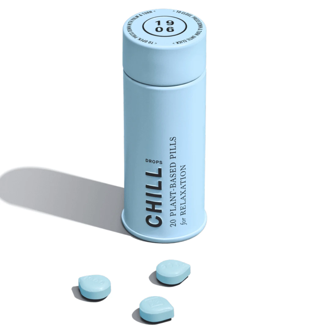 Drops for Relaxation. A unique blend of high-CBD cannabis and plant medicine to promote relaxation. Each Chill Drop contains 5mg THC and 25mg CBD. Fast-acting swallowable pills. Gluten free, dairy free, sugar free.