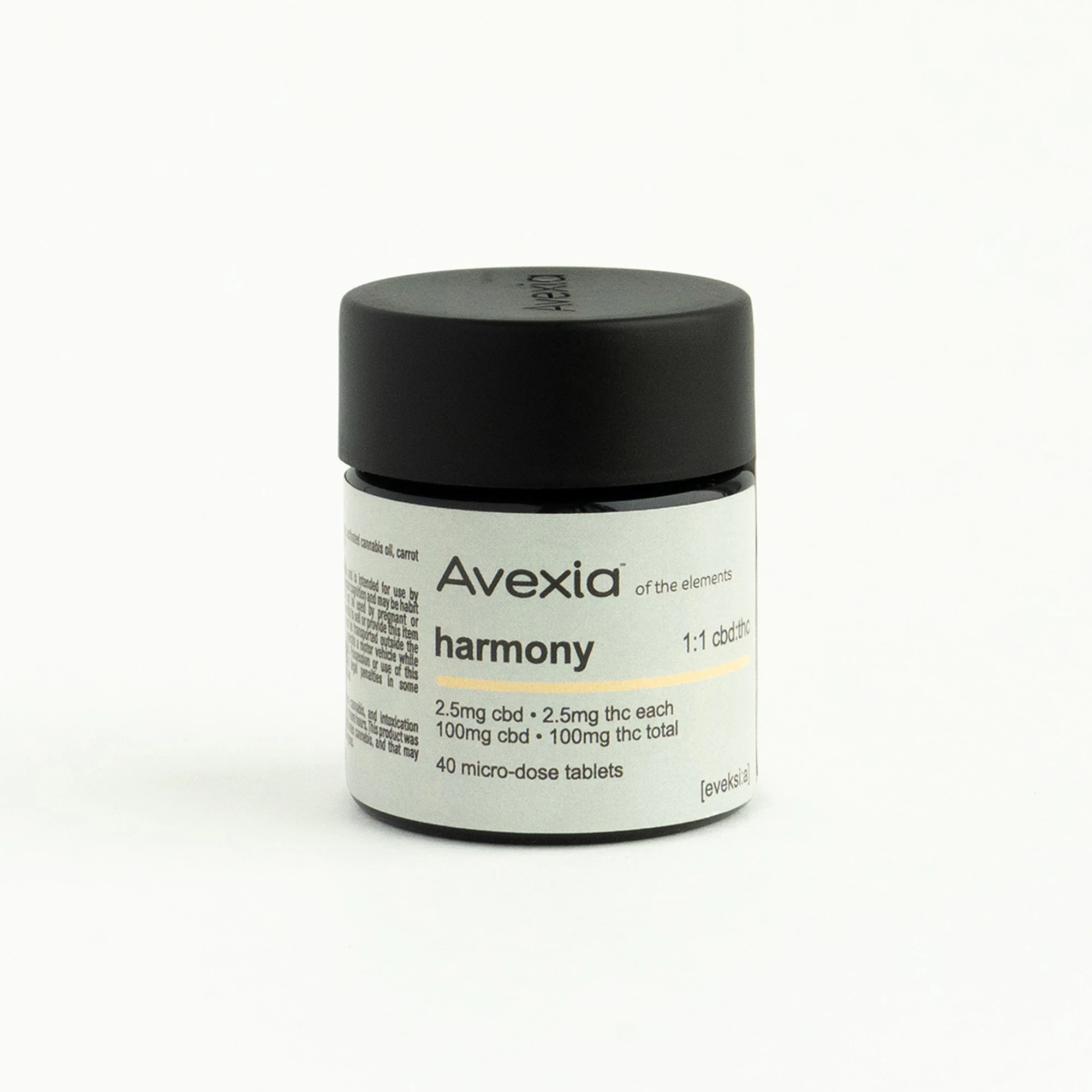 Avexia Harmony is named for its 1:1 CBD to THC ratio. This is the yin and yang of Avexia microdosing tablets and the simplest formulation. Equal parts THC and CBD (2.5 mg of each per tablet) from the highest quality all-natural sources will give you effects suitable for both general relaxation and powerful, targeted pain relief.