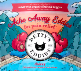 Our very cherry Ache Away Eddies are infused with a soothing blend of CBD, CBC & THC, plus a natural blend of turmeric, piperine, and vitamin E that may help ease inflammation and aid recovery.