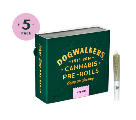 Dogwalkers “STAY” Mini Dog pre-rolls offer a total of 1.75g hybrid flower. Conveniently packaged in an on-the-go tin, each .35g miniature pre-roll (five total) is always crafted with strain-specific premium flower; never shake, stems or seeds. Dogwalkers donates a portion of proceeds from every product sold to deserving animal shelters across the country.