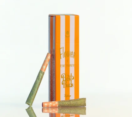 Looking for a feel-good moment? Flower by Edie Parker crafts cannabis and colorful collectibles that are “for a good time”. Women-owned and women-run, we create pretty things that spark joy. This 2 pack of 0.5g pre-rolls comes packaged in a flip-top carton with each pre-roll in its own pop-top tube. Available in a variety of strains in three effect categories. This blend is just what its collection suggests- Relaxing, weighted, and hazy- ideal for your nighttime ritual of pampering or unwinding. Flavor profiles included the aroma berries, earth & cream. Flower by Edie Parker also known as - Weedie Parker, Edie Parker Flower and Edie Parker
