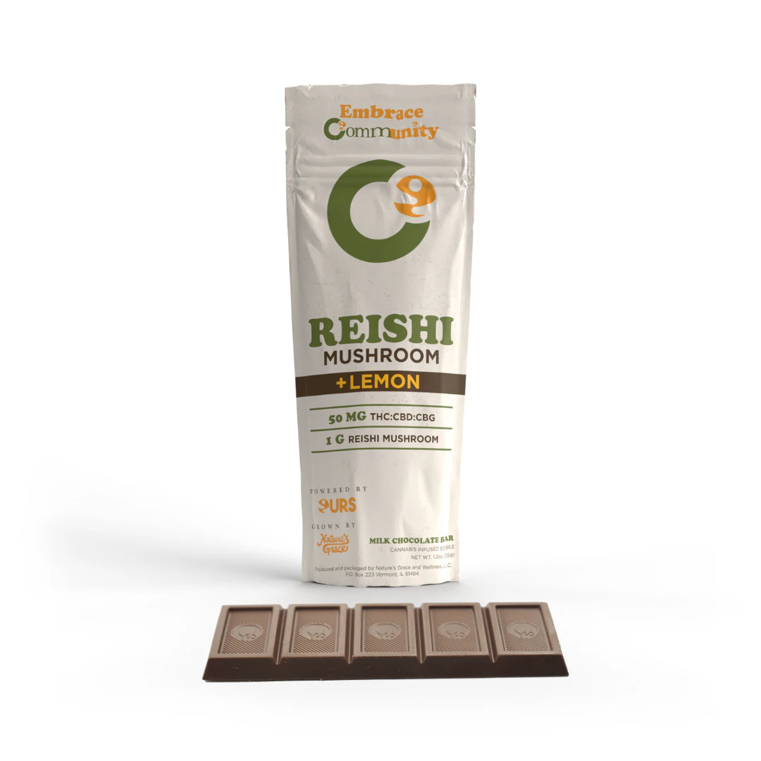 "Introducing our magical 50mg THC:CBD:CBG-infused Reishi Mushroom Lemon Chocolate Bar - the ultimate treat for a wellness adventure! Prepare to dive into a fusion of tantalizing flavors and the incredible health benefits of Reishi mushroom.