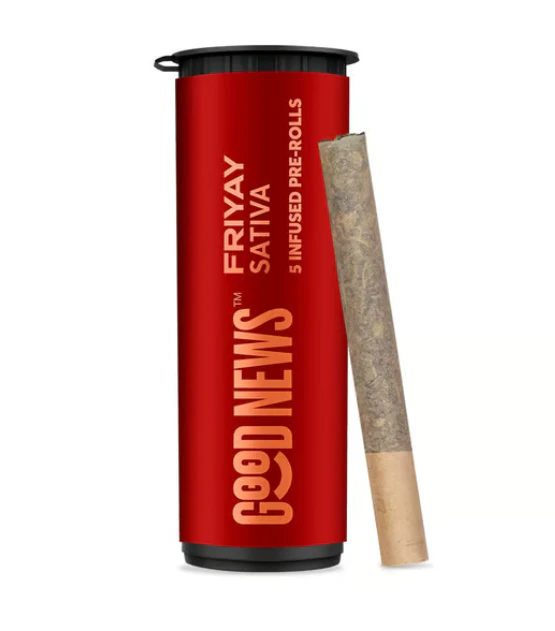 When watermelon links with infused pre-rolls, the vibes stay high.​ -- Good News Friyay Infused Pre-Rolls bring a sweet, watermelon taste and a potent sativa kick.​ -- Precisely infused with a delicate blend of concentrated extract for oomph and botanical terpenes for a tasty watermelon twist. ​