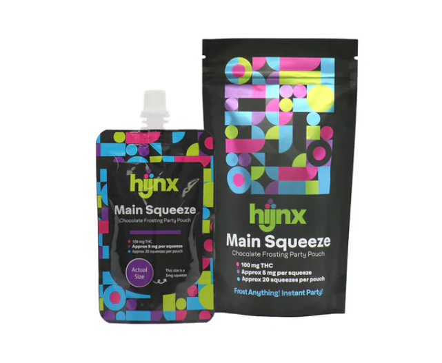 Introducing the Main Squeeze Party Pouch — the sweetest way to customize your cannabis experience. With 100mg of THC in each pouch, this versatile chocolate frosting is perfect for any occasion. Turn anything into an edible. It's a full party in a pouch! Whether you’re adding a dollop to your favorite treat, frosting your own baked goods, or enjoying it straight from the pouch, the Main Squeeze makes it easy and fun to elevate any moment. Designed for convenience, each pouch delivers 20 squeezes of delicious, ready-to-use chocolate frosting. Portable, shareable, and discreet, Main Squeeze ensures your cannabis fits seamlessly into your lifestyle to elevate any moment of event—wherever and whenever you need it.
