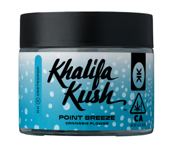 The latest strain from Wiz and the Khalifa Kush team — Point Breeze (KK x Gastro Pop) will quickly impress with its big, bubbly, purple-pointed trichome covered buds. The unmistakable KK gas notes are followed by a unique berry candy aroma straight from its Gastro Pop lineage. As you grind this Khalifa Kush masterpiece, you will immediately notice the grape bubblegum mixed with classic diesel fuel.The high is a top-of-head trip to the upper atmosphere, slowly drifting you back to earth to keep your day moving. As always, the burn is smooth and the ash is white. You’ll notice the resin more than the other plants in the family, as this one is ten outta ten sticky.The name “Point Breeze” is a nod to the Pittsburgh neighborhood where it all started (and company is still based out of today); and the packaging is inspired by the biggest, slowest-moving fish in the sea – the whale shark.