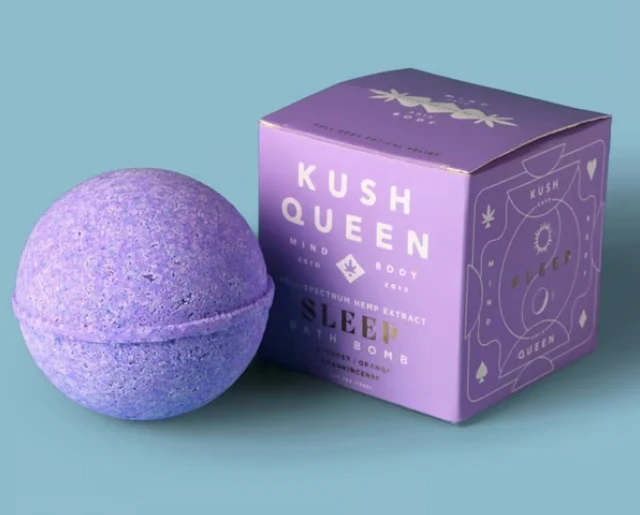 Soak into a better night’s sleep with a studied blend of cannabinoids and essential oils. Kush Queen’s Sleep Bath Bombs deliver powerful muscle-tension relief, intense mind-body relaxation, color therapy, aromatherapy, and the ASMR of your dreams. HOW DO WE DO IT? Both Sleep Bath Bombs are intelligently designed with a blend of lavender, frankincense, and orange essential oils plus cannabinoids to provide intense relaxation, and calm both mind and body for deeper sleep. TLDR; We’re so much more than those $5 artificial-fragrance-filled bath bombs. We’re science.