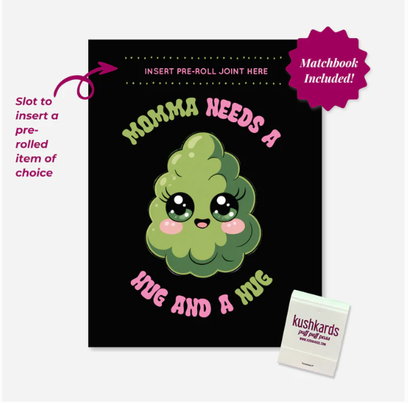 The 2026 Limited Edition Momma Needs a Nug and a Hug KushKard is a sweet, playful cannabis greeting card designed for moms, mother figures, and nurturing souls who deserve a little love and a little lift. Featuring an adorable smiling nug illustration and soft, bubbly lettering, this card blends comfort, humor, and 420-friendly charm into one irresistible gift.