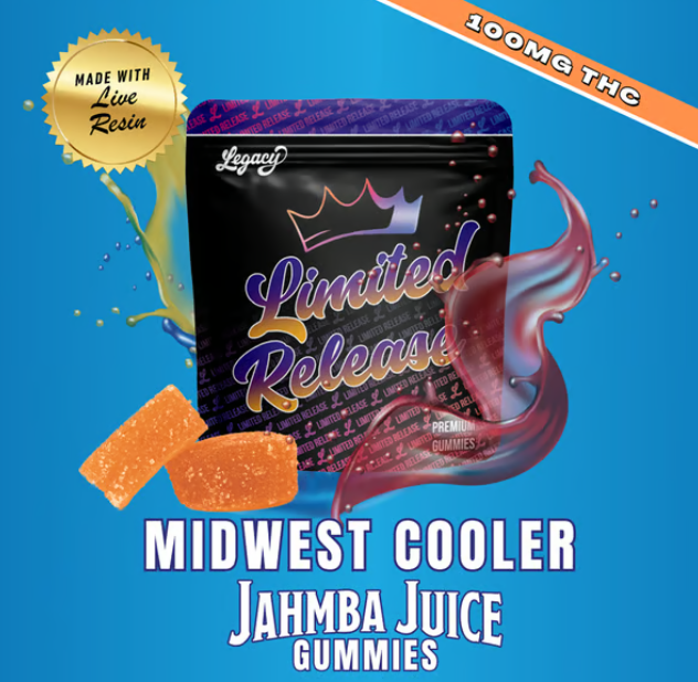Midwest Cooler brings that backyard kickback energy with every bite. Made with JAHmba Juice live resin, these gummies mix orange and banana flavors into one bright, punchy hit. You’re getting 10 pieces, each dosed with 10mg THC, stacked for easy sharing—or not. Expect smooth citrus upfront, mellow banana on the back, and a high that floats right between chill and charged. Midwest Cooler is your go-to for making ordinary days feel like something’s brewing.