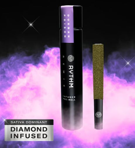 A sativa-dominant strain with a complex palette of sweet, earthy, piney flavors, Durban Poison is known to keep energy sparked. Remix pre-rolls feature RYTHM premium indoor flower double infused with THCa diamonds and kief for maximum potency and fine-tuned with 100% natural terpenes.