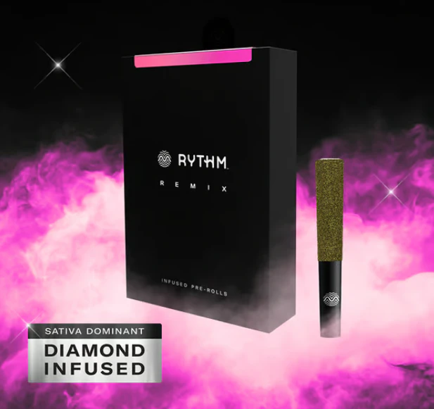 This vibrant sativa-dominant strain overflows with a juicy-as-it-gets flavor profile of sweet, creamy mango. Remix pre-rolls feature RYTHM premium indoor flower double infused with THCa diamonds and kief for maximum potency and fine-tuned with 100% natural terpenes.