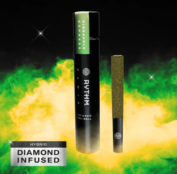 Bright and tropical yet earthy, this aromatic, invigorating hybrid strikes the perfect balance of flavor and feeling. Remix pre-rolls feature RYTHM premium indoor flower double infused with THCa diamonds and kief for maximum potency and fine-tuned with 100% natural terpenes. -- Explore your taste in premium cannabis with RYTHM's curated lineup of expertly cultivated, award-winning strains. · Strain type: Hybrid · Potential effects: Energetic, promotes emotional well-being · Dominant flavors: Pineapple, mango, pepper, pine