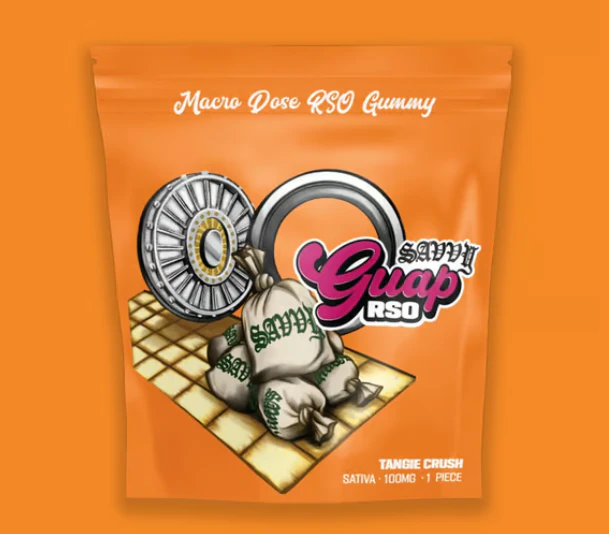 Short stacks, the highest dose. Savvy Guap RSO gummies are money, loaded with 100mg THC and terps in one big-bite-sized piece for a full-spectrum high you’ll crave. Taste the goods in sativa Tangie Crush, a bold burst of exotic citrus and sweet berry that hits just right.
