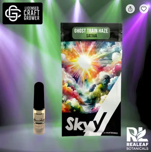 Embark on a spectral journey with Ghost Train Haze from Realeaf Botanicals, a Sativa vape renowned for its potent effects that are as mysterious as they are exhilarating. Crafted from an exceptional lineage, combining Neville’s Wreck with Ghost OG, this sativa strain is designed for those with a seasoned appreciation for the finer nuances of cannabis exploration. This strain is celebrated among veteran stoners for its cerebral effects, which stimulate creativity, enhance focus, and invoke a sense of euphoria that can elevate the mind to new heights. Ghost Train Haze from Realeaf Botanicals is perfect for those looking to explore the outer edges of their consciousness or dive deep into creative projects.