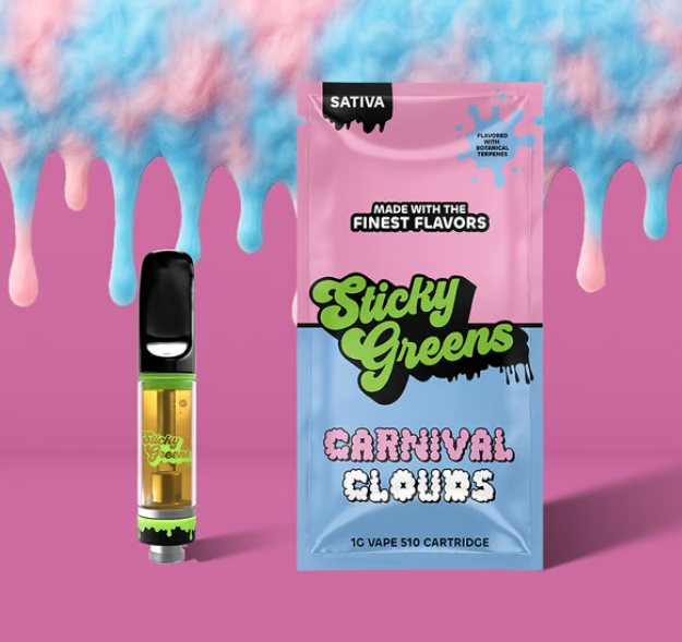 Carnival Clouds will take your tastebuds back to cotton candy clouds and carefree carnival days. 1g 510 Vape Cartridge Lineage: Sativa Flavor Profile: Pink cotton candy THC: 80%+ THC Dominant Terpenes: Limonene, Myrcene, b-Pinene