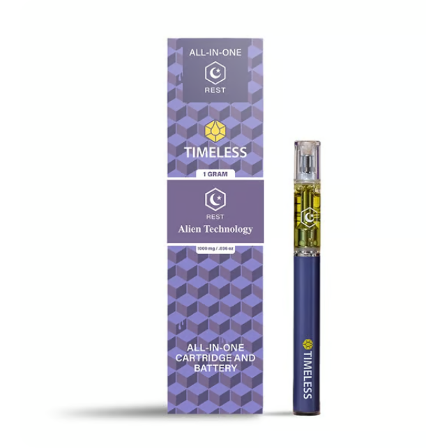 An Indica Strain for Relaxation. Get ready for a unique experience with Alien Technology. Out-of-this-world flavors of pungent diesel and earthy notes are punctuated by subtle hints of apple and eucalyptus. Caryophyllene, Limonene, and Ocimene lead the way, guiding you towards a realm of deep relaxation and calm. Prepare to be lifted away.