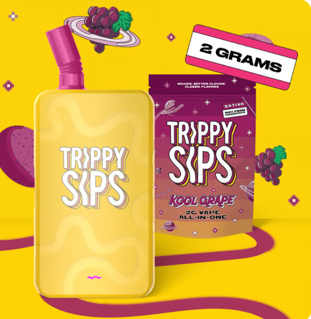 Take your tastebuds on a trip down memory lane with the sweet, wall-bustin’ grape drink taste of Kool Grape! 2g All-In-One Vape Lineage: Sativa Flavor Profile: Grape drink THC: 80%+ THC Dominant Terpenes: Gualiol, a-Bisabolol, Linalool