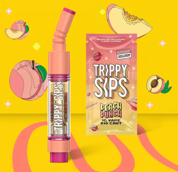 Peach Punch is a sensational blend of flavors: ripe peaches, passionfruit, and a tangy citrus mix. 1g 510 Vape Cartridge Lineage: Sativa Flavor Profile: Peach, passionfruit and citrus punch THC: 80%+ THC Dominant Terpenes: Myrcene, Alpha-Bisabolol, Terpinolene
