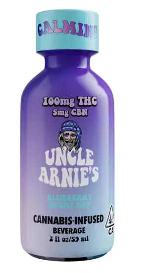 Knock out with the travel sized Uncle Arnie's 100mg THC Blueberry Night Cap Shot. This two ounce shot is infused with 5mg of CBN, a cannabinoid known to help you wind down. Feel relaxed knowing you have a night cap waiting for you after a long day at work. Just like the classic 8 ounce drinks, these are infused with nano-emulsion technology. You can control your high or get as lit as you want by using the dosed measurement system. Expect your rocket to blast off in 20-40 minutes.